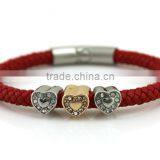 Wholesale Colourful 3mm Real Cow Leather Braided Bracelet With Love Shape Stainless Steel Clasp for Men/women/chil