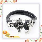 Braided Men Leather Bracelet With Unique Skull Anchor Closure