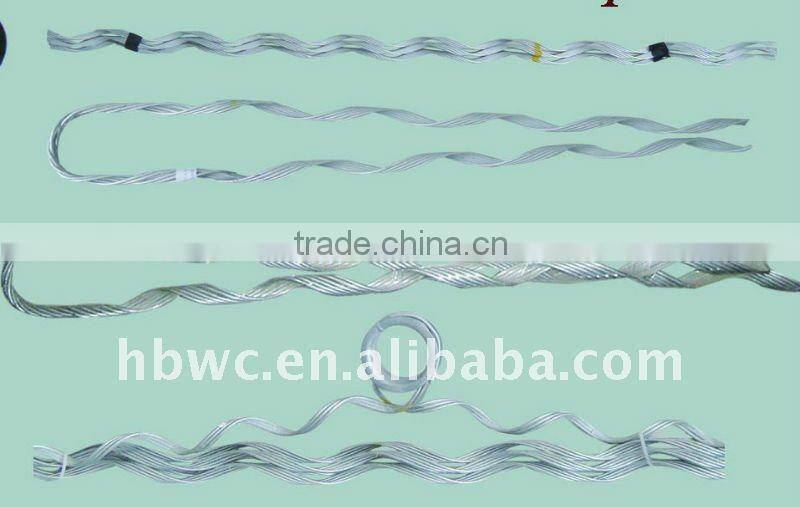 Be made of galvanized steel wire or aluminum clad steel and preformed into the process when prefabricated beam, inner wall layer of emery stick, and enhance the friction between clamp and cable.