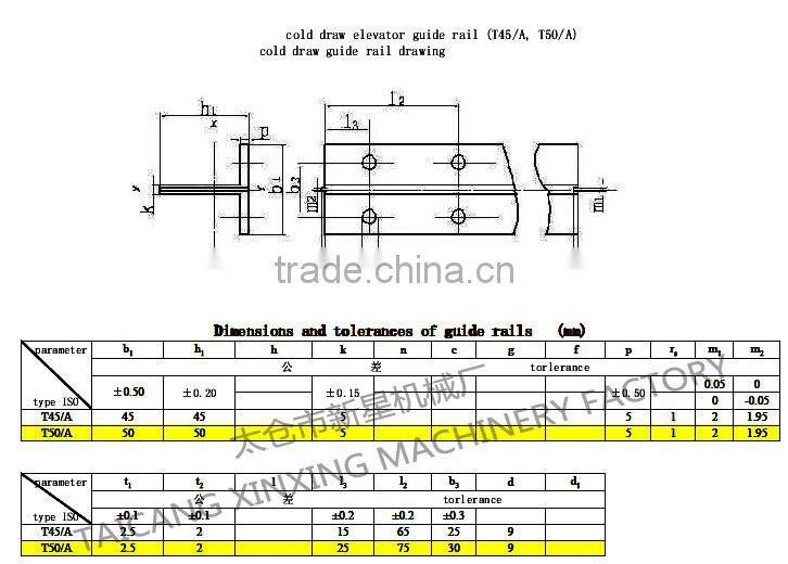 cold drawn elevator guide rails: T45/A,T50/A