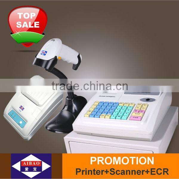 - This cash register machine with cash box together, also with barcode scanner and receipt printer together as one set for reference.