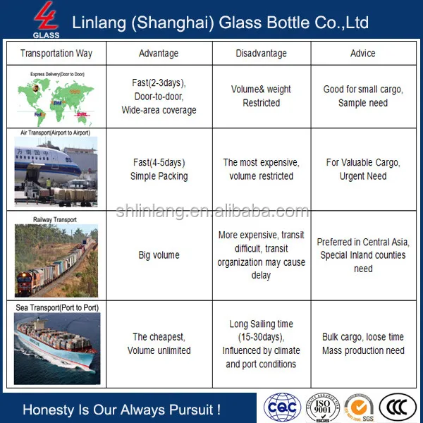 Q4. How do you ship the goods and how long does 330ml Fruit Juice Glass Bottle take to arrive?
