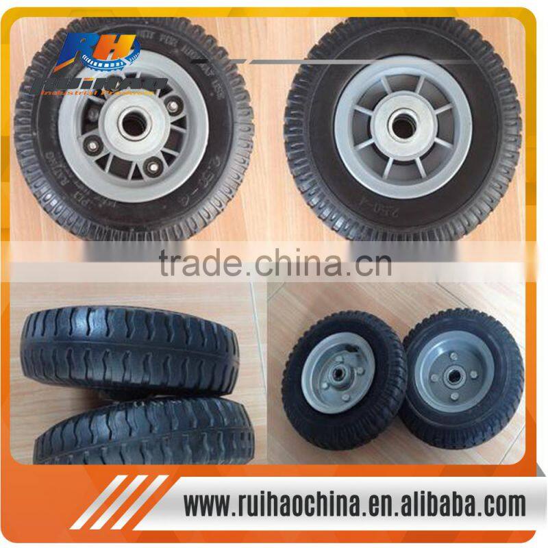 We promise to supply you with high quality solid and Pneumatic wheels, and also OEM service for different colors PU foam wheels for any size.