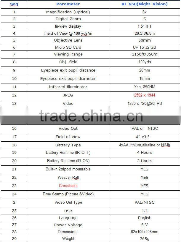 Night Vision Scope For Hunting Specifications: