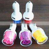 Super Quality Colorful Portable Dual Usb Car Charger Rose Style Car Charger 3.1A for Smartphone