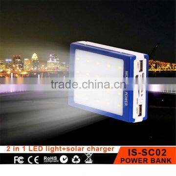 High Quality Universal Solar Power 6000mah Usb Power Bank With Led Light