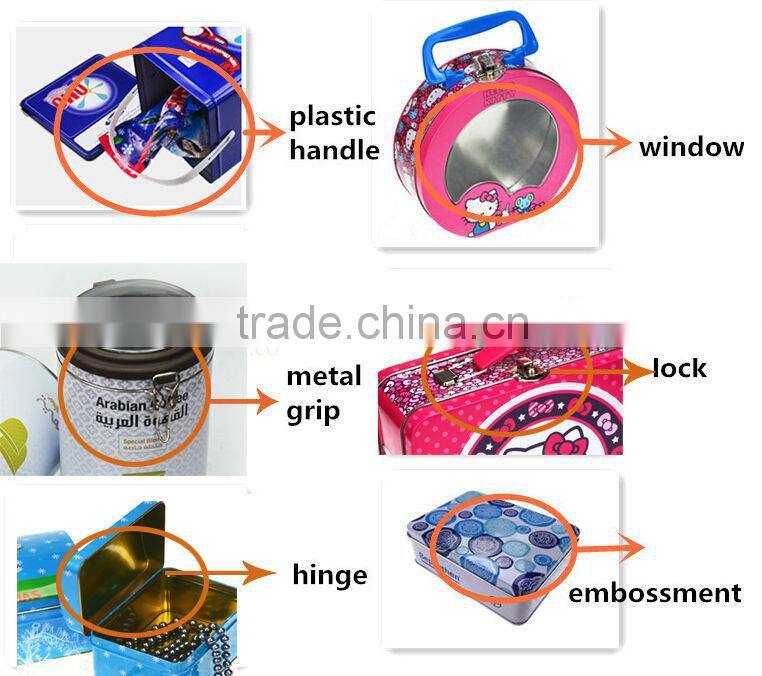 1. Q: What is tinplate? Are printed tins safe for food? A: Tinplate is the steel electrolytically coated with a fine layer of tin for tin protective purposes. Tinplate is a highquality safe packaging material for food items. such as cookies candies, chocolate, etc. A food grade lacquer is coated on the inside of the tin to prevent corrosion and interaction of the tin with the food product and thus make it suitable for food storage. 2.Q: Can I get a price list ? A: We do not provide a list to our customers. All items are quoted individually. As we know, the price can be effected by several factors, such as material thickness, product shape, size, order quantity, print colors, etc. Also, the material prices can change constantly. Please tell us your requirements and we shall find the best solution for you. 3.Q:What are CMYK & RGB? A: In offset printing "Four color" and "Full color" mean the same thing. "Full color" represent the four primary printing colors, Cyan(C), Magenta(M), Yellow(Y), and Black/Key(K), also known as CMYK. Your computer scgreen and in most programs are likely formatted in RGB color space (Red, Green, and Blue). In offset printing you can not use RGB formatted and must cover it to CMYK. Please understand a color shift will occur in doing so. CMYK cannot reproduce RGB exactly the same and may need to be adjusted after the conversion. 4.Q:What about the lead time for mass production? | |||||||||||||||||||||||||||||