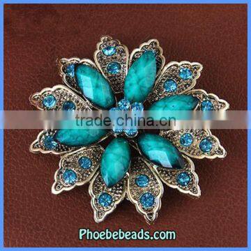 Wholesale Vintage Brooches Turquoise Flower With Rhinestone PFB-W011