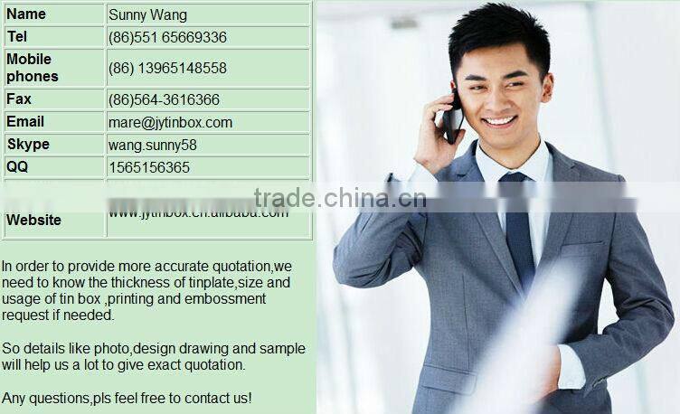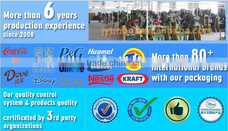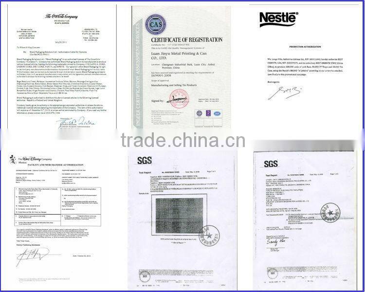 We can create all kinds of shapes, specifications, designs and printing of antique tin containers whatever you require. | ||
