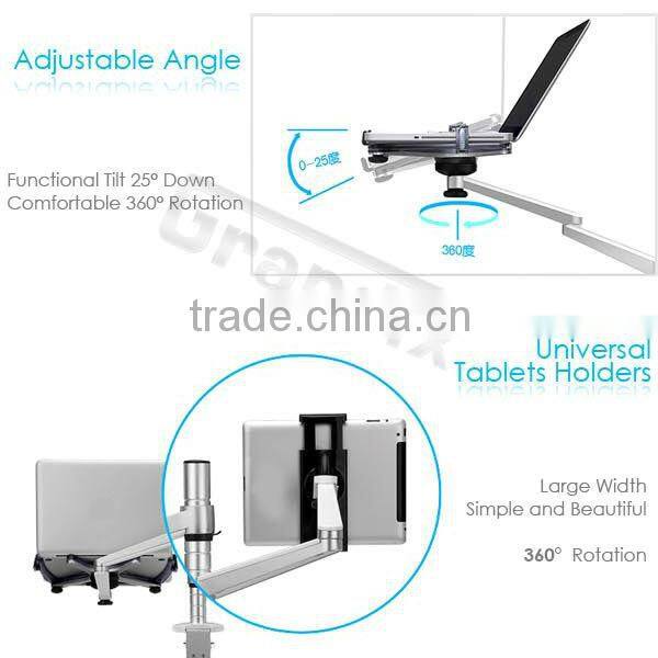 *Two swivel arms :360 degree rotation, adjustable height, adjustable joint in one arm