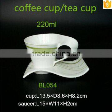 Wave Shape 220ml Bone China Tea Cup and Saucer With Green Color Quality Choice