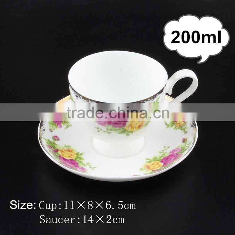 With Flower Decal Round Shape Porcelain Cup 200ml Bone China Coffee Cup With Saucer