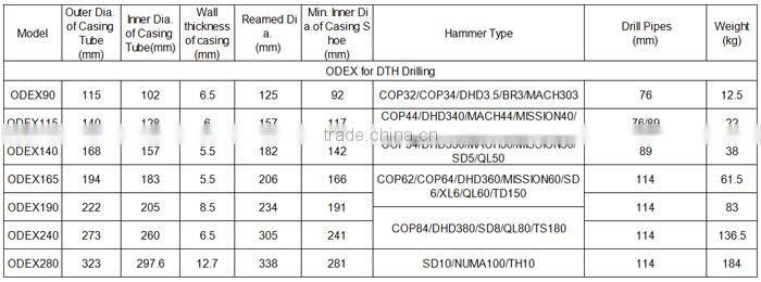 Trustworthy China Supplier Drill Tools Overburden Casing ODEX Drill