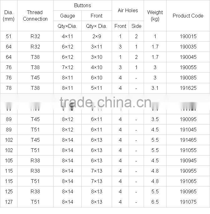 1. These threaded button bits can meet different drilling requirements in all rock formations. We can offer special designs according to customer's requirements for specific work situation.