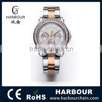 Elegent Multifunction Gold All Stainless Steel STONE Wrist Watch for Women and Men