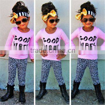wholesale long sleeve shirt matching leopard pants kids boutique clothing