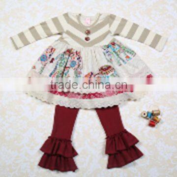 beautiful baby stylish embroidery long sleeve cotton dress and ruffle pant kids clothes |