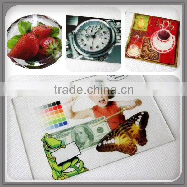 6.It can directly print on the surface of crystal, wooden, bamboo, metal, stone, leather, PVC, PP, PE, Ceramic tile, Acrylic and so on.