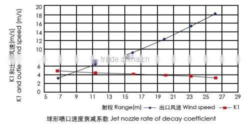 When the public place area is large(for example, some halls and assembly shop), we can not achieve the effect by using ceiling diffuser, in this situation, we need to install jet nozzle in the side to blast. In the situation where outlet and the room temperature changes constantly, the blast air current will be upward(hot blast) or downward(cool wind) offset. The blast direction also possibly receives the disturbance from external factor, like partial convective current or crossflow. Therefore, some model's jet nozzle may be designed as a revolving way.