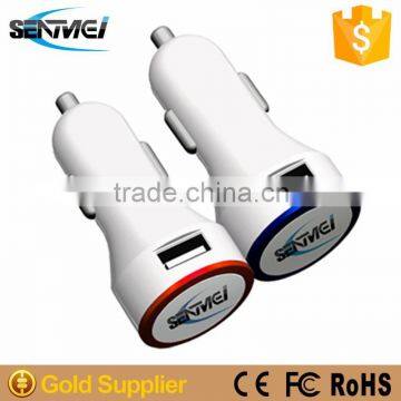 Circle Shape Dual Output Mini Usb Car Charger With Colorful Led Lamp Ring