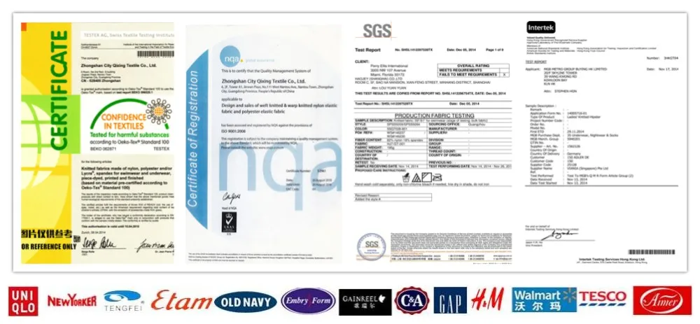 fabrics mainly for swim suit, lingerie, sport&sleep wear, Etc. All the products are in line with European OKEO-TEX100 environmental protection standard, and have passed ISO9001:2008 Quality Management System Certification.
