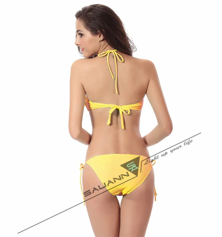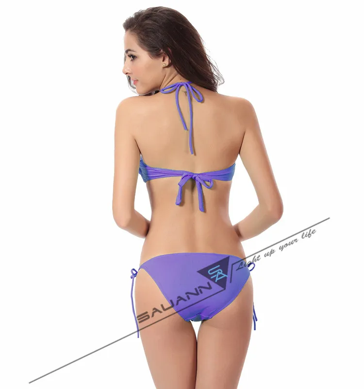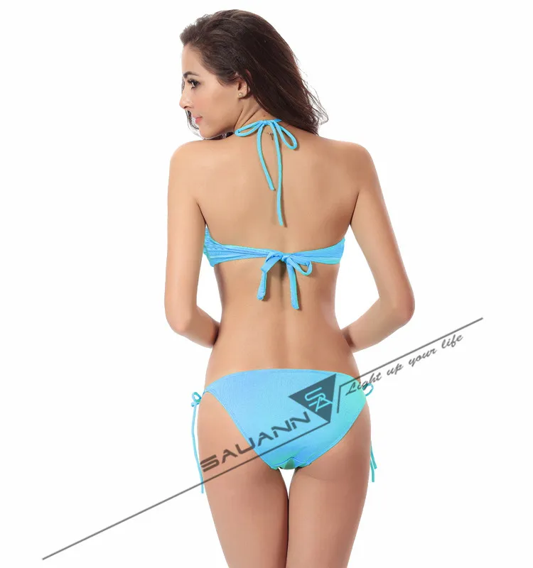 SAUANN 2016 Halter Triangle Padded Top Bikini Set Swimwear Swimsuit
