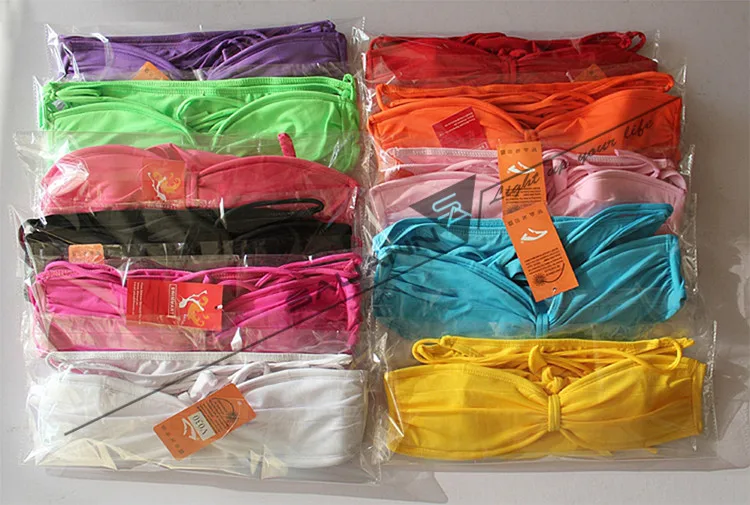 Women Summer Sun Beach Swim Bandeau Triangle Push-Up Padded Bikini Suit