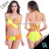 2016 Hot Sale Nylon Spandex Brazilian Sheer Crop Flouncing Top Bikini