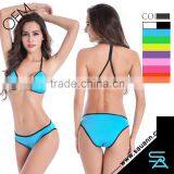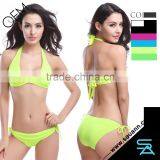 2016 Newest Women Sexy Halter Drawstring Triangle Bottom Two Pieces Neoprene Bikini Set
