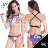 2016 SAUANN Women's American Flag High Neck Halter Bikini Set Bathing Suit