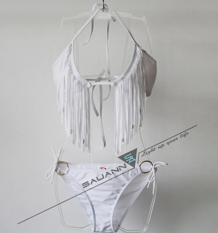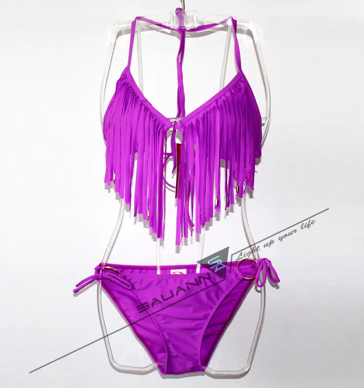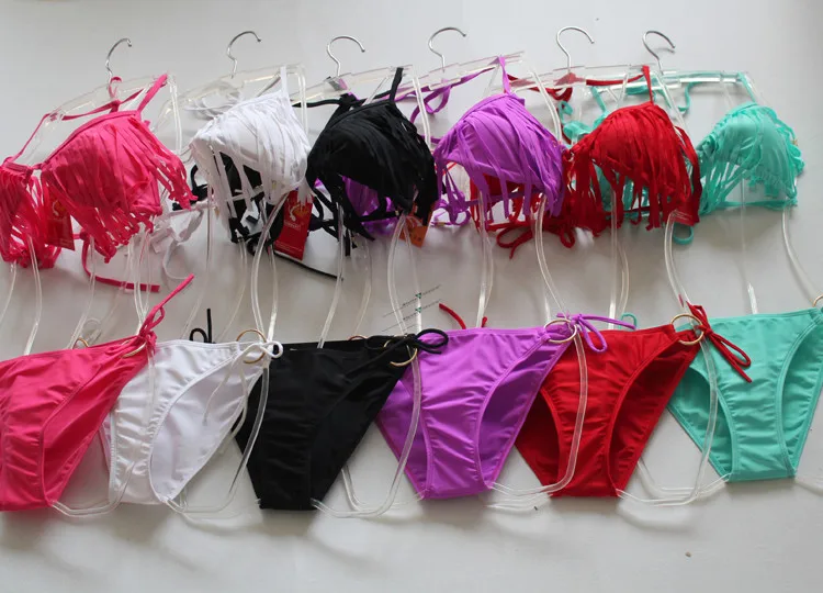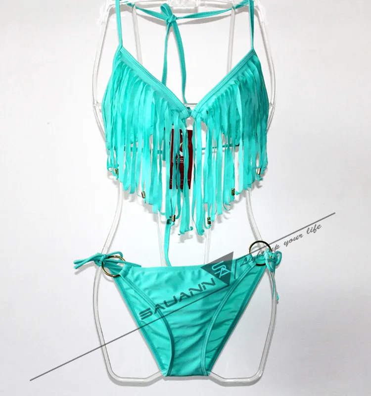 Blue Strappy Tassel Bralette Bikini Top & Underwear