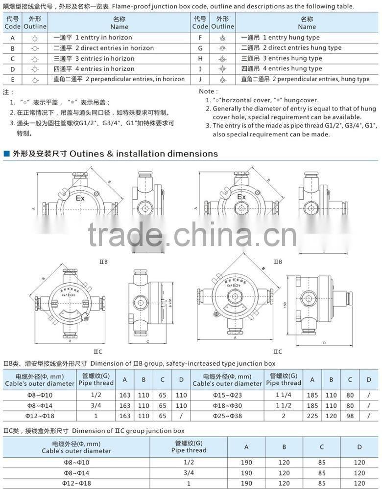| Packaging Details: | Explosion proof junction box Standard packaging or on request. |