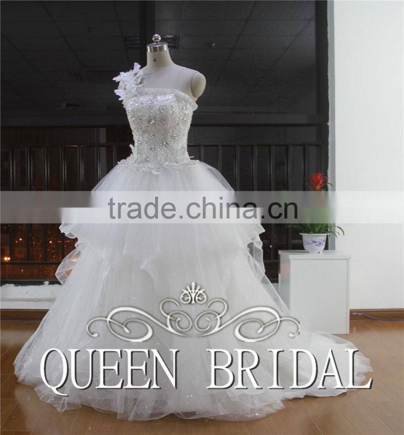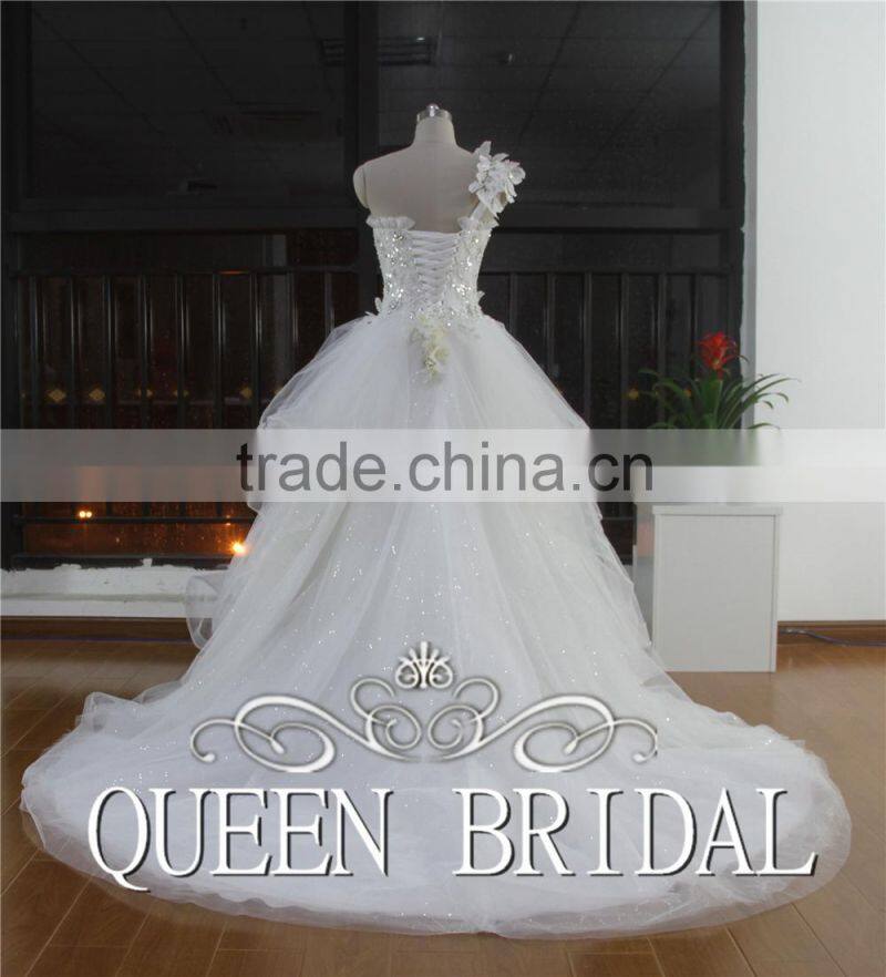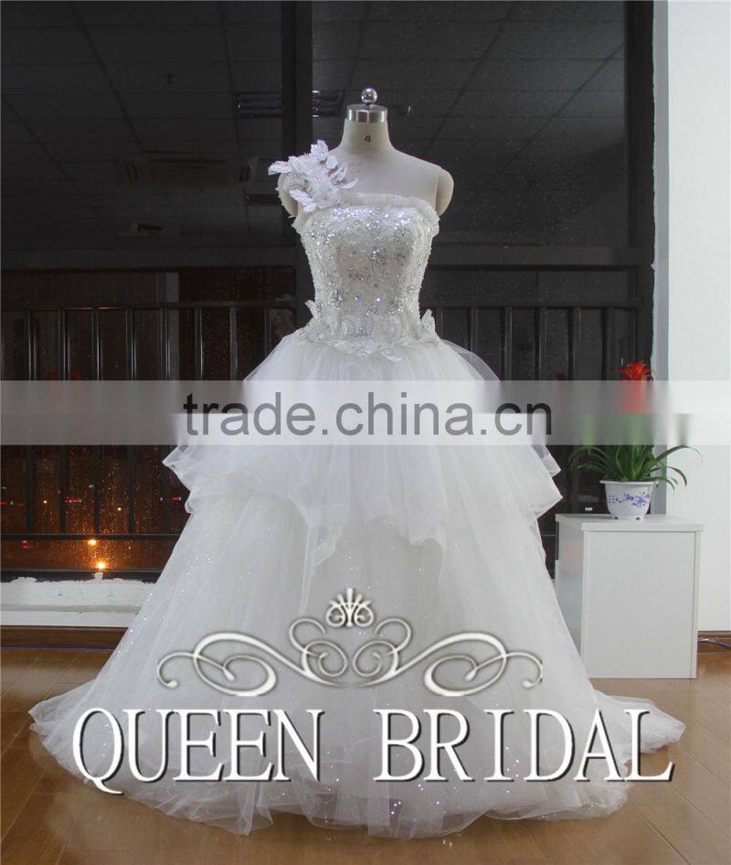 Latest Style One Shoulder Sleeveless Flower Embroidery Beaded Dresses For Wedding