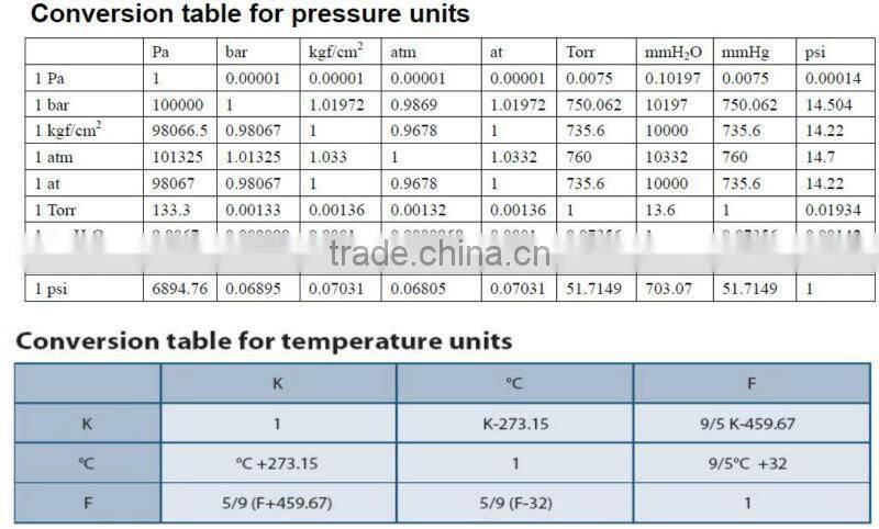 10,Working pressure: Vacuum -14.5PSI to +800PSI (Selectable, Read table 2).