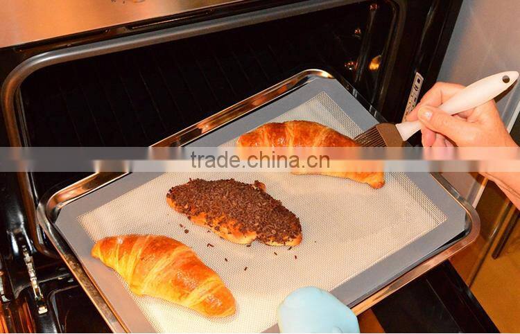 (2)Because more than one baking production process,our silicone baking mats with white fiberglass will not change into the cream brown color after long time use.