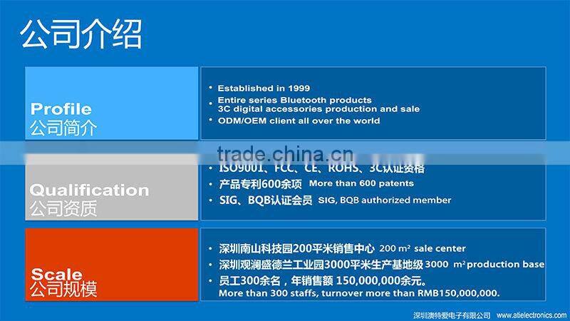 The Bluetooth headset was designed for High-mid market, covering almost the existing functionality of Bluetooth headset. With high end package and premium quality, it is believed that they can find a very good market and boost your sales.