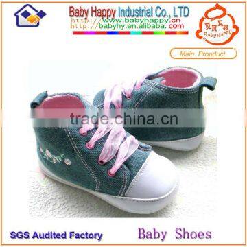 china supplier blue denim high-top canvas baby sneaker shoes