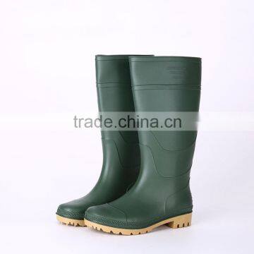 Factory price green pvc rain boots without steel toe, cheap plastic pvc rain boots