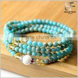 Chakra Jewelry Buddhist Prayer Mala Beads Tibetan Healing Stones Natural Ocean Blue Imperial Jasper Wrap Bracelet Necklace