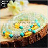 Bear Free Jewelry Multilayer Tibetan Natural Yellow and Green Agate Mala Bead Prayer Wrap Bracelet Necklace
