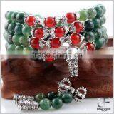 Multilayer Mala Beads Natural Moss Agate Gemstone Meditation Prayer 4 Row Beads Bracelet