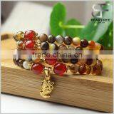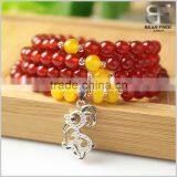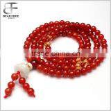 Multi-Strands Natural Red Agate Buddhist Prayer Mala Beads Wrap Necklace Bracelet With Silver Monkey