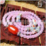 Bear Free Jewelry Multilayer Tibetan Natural Pink Agate Mala Bead Prayer Wrap Bracelet Necklace