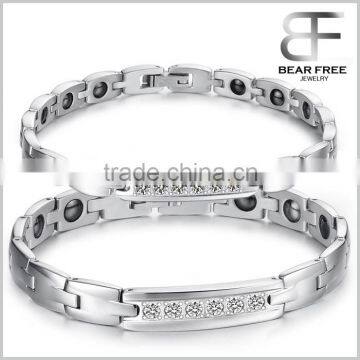 Procuct Name: Popular Jewelry Stainless Steel Titanium Health Magnetic Energetic Couples Bracelet With Cubic Zirconia Setting