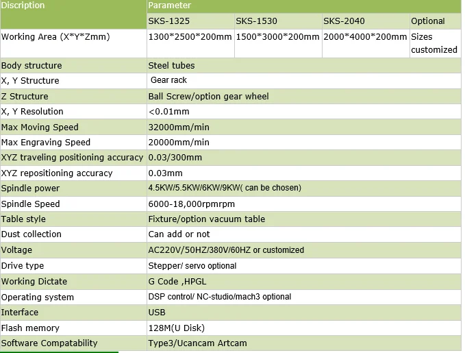 1. X,Y axes transmission with gear rack, Z Germany ball screws, ensures stable and smooth movement of the machine.