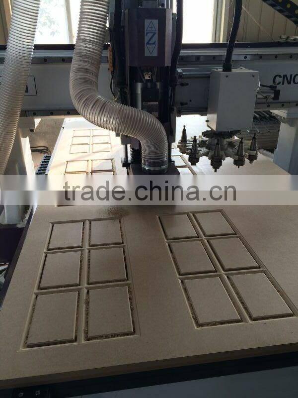 This 1325 atc cnc router specailized in processing kinds of furnitures(wooden door and furniture, windows, tables and chairs,cabinets and panels, 3D wave plate,MDF),with 8 tools can automatic change tools easily,save the changeing tools' time.