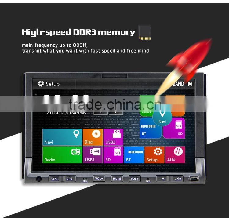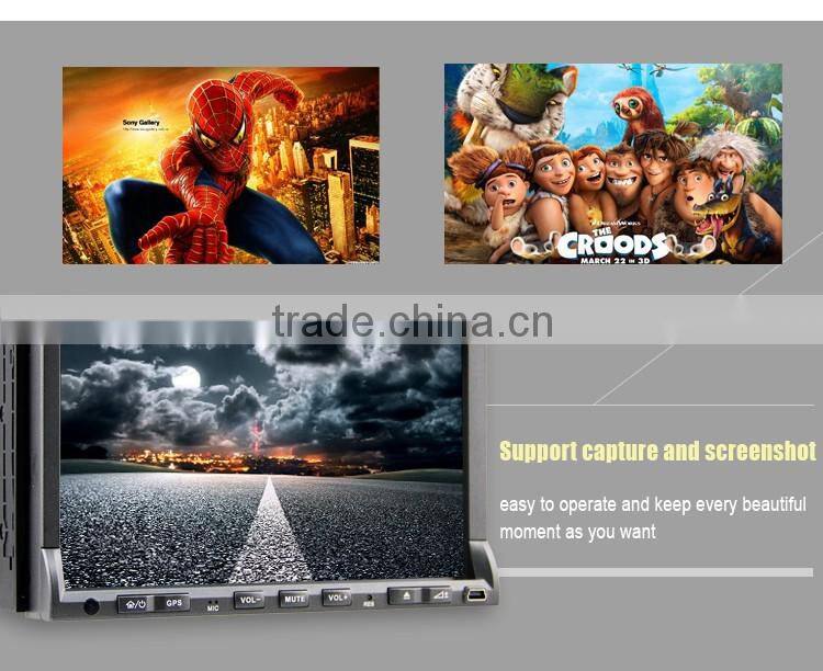This is the newest 2Din All-in-One Design with motorized slide down Monitor, Beautiful and fashionable Win8 UI, MTK3360 800MHz CPU, 256MB RAM, support 1080P RMVB Video, 10-Band EQ, 3G WCDMA Internet, VMCD---Virtual 10 CD Changer, Bluetooth PB-Download and PB-Search, Steering Wheel Control, built-in 6 Games, Calculator, 110 Start Unit Logos, 10 internal wallpapers and can update user's wallpaper, show and play iPod/iPhone4/5/iPad playlists, Support Portable Hard Disk up to 500GB, Car Recorder and Digital TV Box input + power supply + Touch control