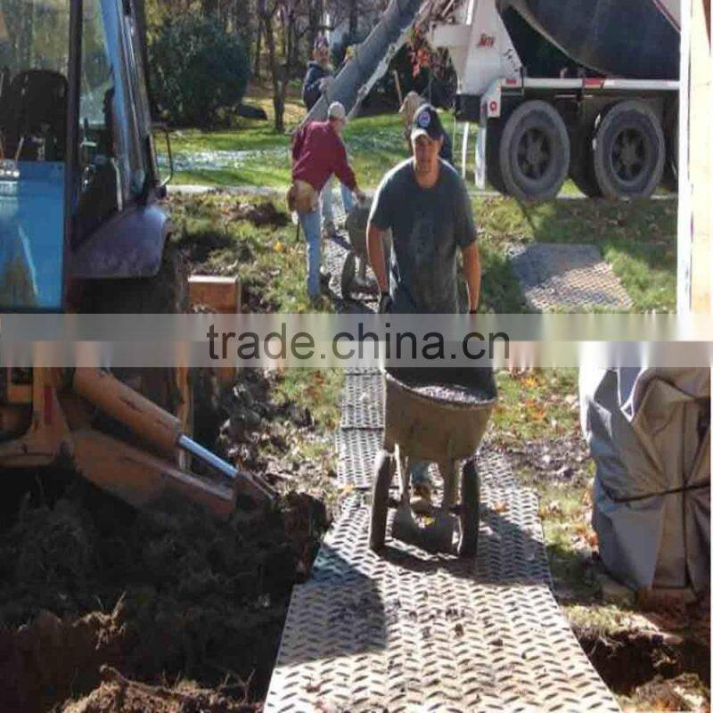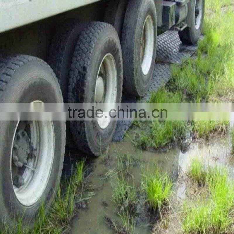 HDPE construction road mat could both protect expensive turf and provide access and traction over mud, sand, snow and other difficult surfaces.