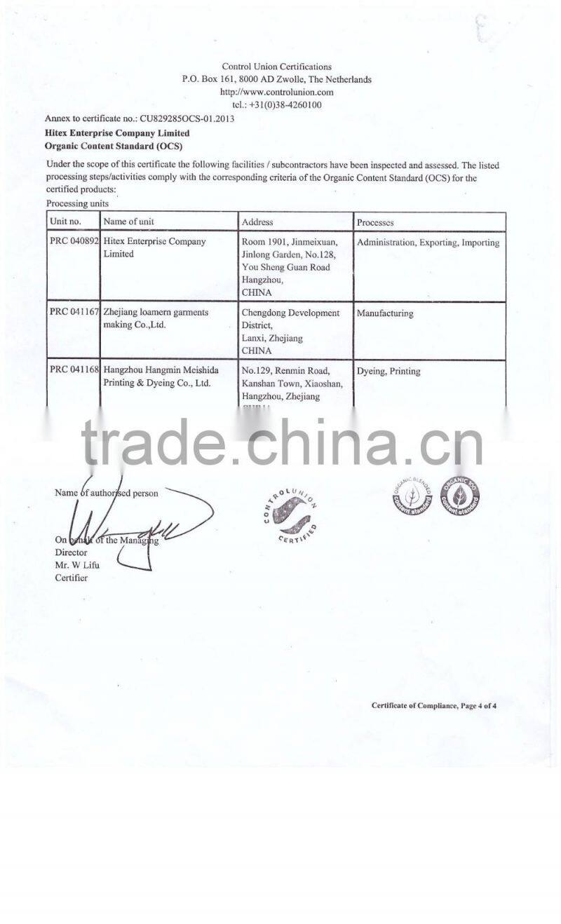 Since foundation, we always adhere to the principle of "Customer highest, quality first, credit first, service first." We have received the ISO9001 quality system certificate and Oeko-tex Standard 100 certificate.