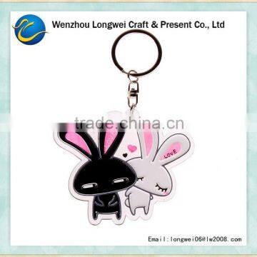 cute rabbit couple acrylic keychain laser cut/acrylic key chain/plastic spring key chain